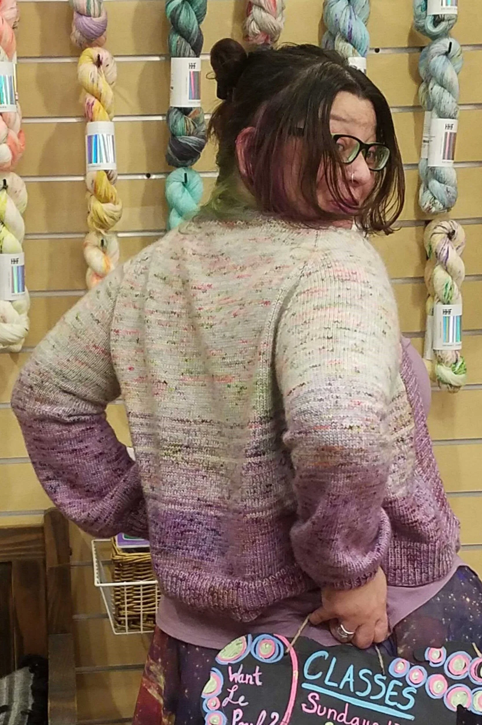 Ever wanted to knit a cardigan? Well here is your chance! The Le Pouf Cardigan is a simple pattern by Hedgehog Fibers. It is a top down raglan sleeved sweater using a "fade" where you blend the colors using different yarns. In this class you will not only learn to fade, but also the construction of a raglan sweater. If you haven't knit a sweater before -- this class is for you.