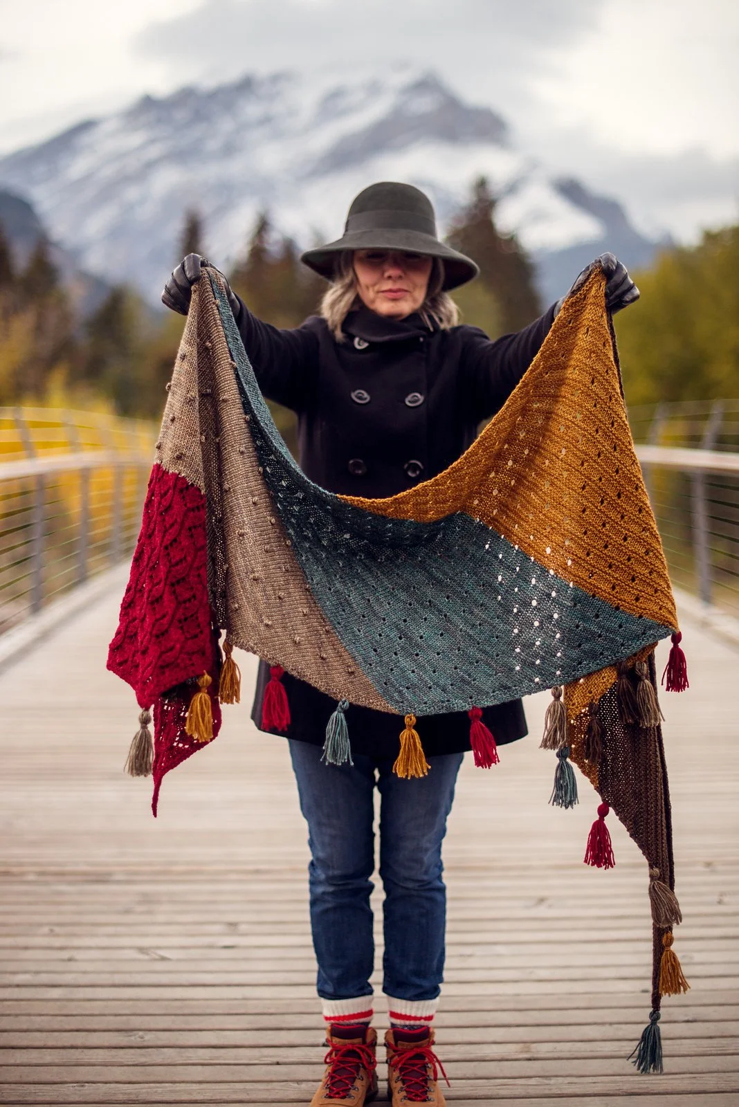 Join in the fun 4 session knit along with Alicia! This lovely shawl is knit on the diagonal and will keep you engaged with each stripe change of pattern. It is perfect for use with any of our lovely DK yarns in the shop; Purls & Postulates, or Thread Head and also Malabrigo's Rios, a light worsted, would work up beautifully.