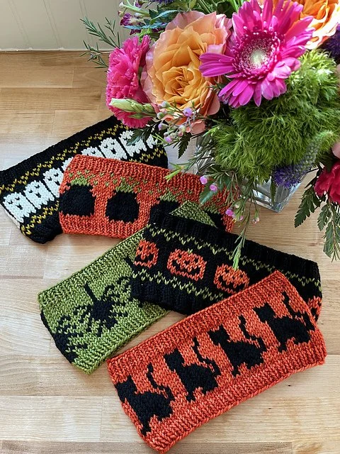 The Spooky Ear Warmer Collection pattern by Rosie Posie Knit Co.