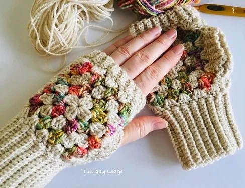 -Fingerless Granny Square Mitts by Lullaby Melodia