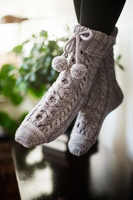Indulge in the ultimate cozy knitting experience with Hearthome Socks! Perfect for those chilly evenings these vintage-inspired socks are designed to keep your feet warm and stylish all at once. Featuring thick folded cuffs, gorgeous cables and optional whimsical pom poms, these socks are a delight to wear. With traditional heel flap and gusset construction these socks offer a low key yet tidy fit that is perfect for any level of knitter. Basic knitting skills required: the knit and purl stitch. You will knit in the round and learn to knit cables. Even if you are new to cables Hearthome is a great place to start! The worsted weight yarn makes it easy to master the X's & O's cable motif. Malabrigo Rios yarn is perfect for this project.