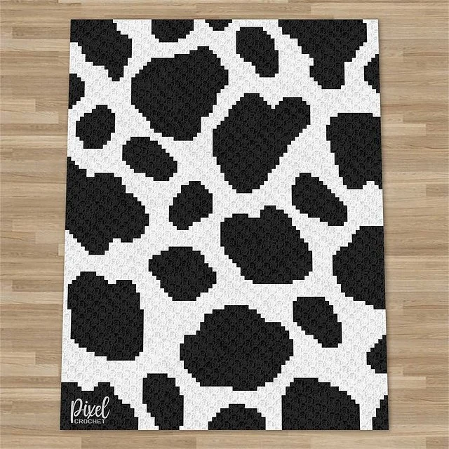 C2C Cow Print Blanket Pattern by Pixel Crochet