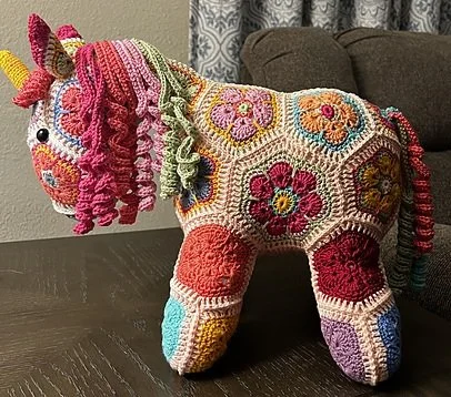 African Flower technique animals are super fun to make, and we just couldn't stop at the Frog Prince or Smaug the dragon. It is with great glee that we present to you the wonderful Fatty Lumpkin! Come crochet your very own Fatty Lumpkin, with or without Pegasus wings, unicorn horn both are optional. Completed size is approximately 10.5” from top of ears to feet and 11” from nose to tail. You will learn the African flower technique crochet method, the join as you go crochet construction, how to crochet in the round. We will learn how to make hexagons to create a basic stuffed animal construction. And of course we need to learn how to stuff this fatty lumpkin. Prerequisites are basic crochet knowledge stitches such as chaining, slip stitch, single, double, and treble crochet and also the basic knowledge of granny square construction. If you know how to crochet, but haven't done granny squares yet, please take advantage of the next granny square class on Sunday June 23rd from 5:00 pm to 7:00 pm, or contact us at the shop to schedule a private lesson to prepare you for this class.