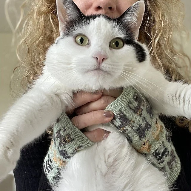 I absolutely adore cats, and like a lot of us knitters you’ll be smitten too! These super cute color work, fingerless mitts come in three sizes based on hand circumference: 6 1/2”, 7 3/4”, 8 3/4”. They are knitted from the cuff upwards. Worked in the round with magic loop or DPN’s, your choice? Basic knitting skills are required: Must know how to cast on, knit stitch, purl stitch, & bind off. You will learn stranded color work, M1L, K2tog. This is an excellent opportunity to use those mini skeins you’ve been saving for something special. So, come join in the fun and knit your own set of kitten mitts.